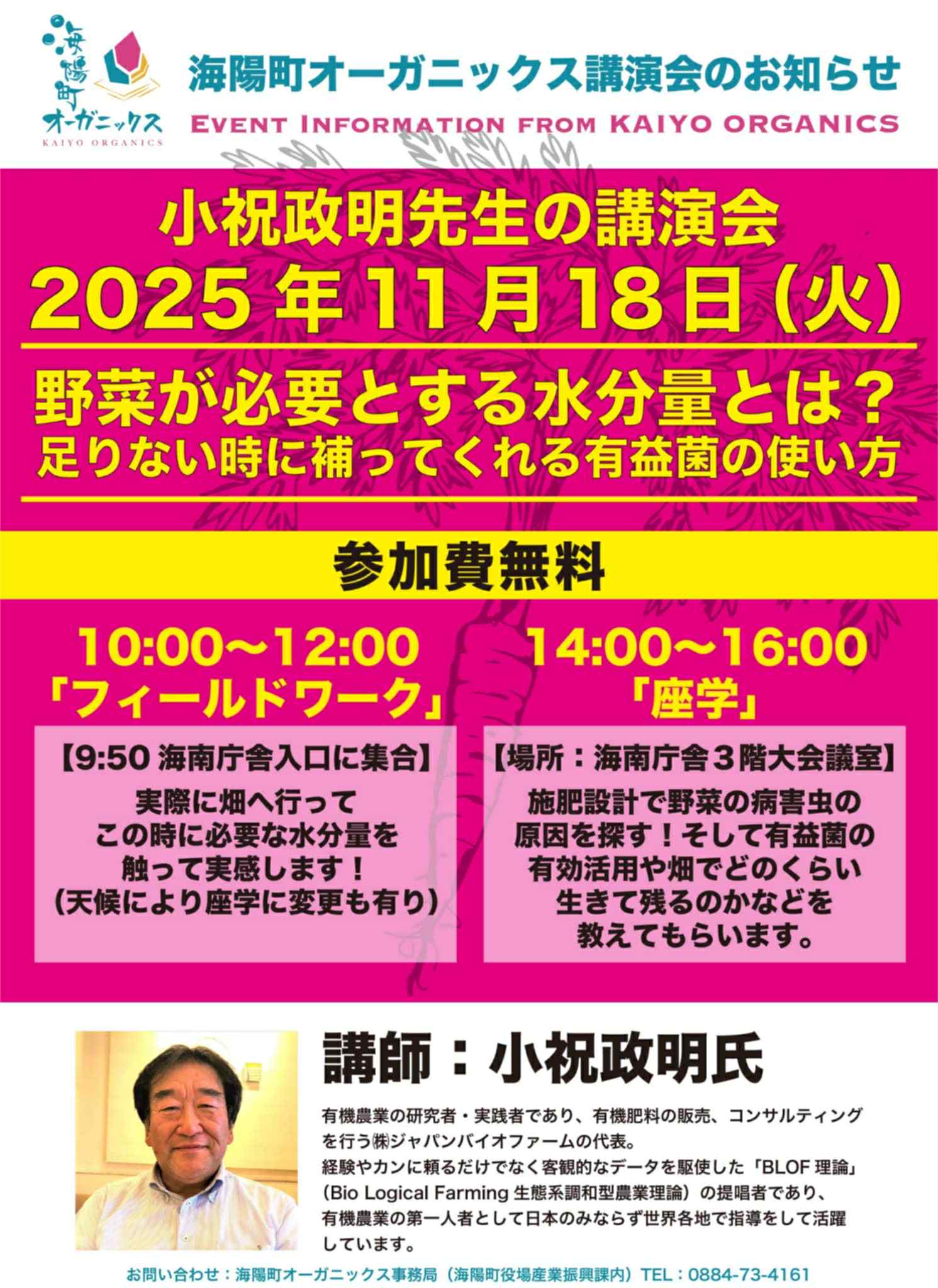 内容:施肥設計で野菜の病害虫の原因を探す!そして有益菌の有効活用や畑でどのくらい生きて残るのかなどを教えてもらいます。
