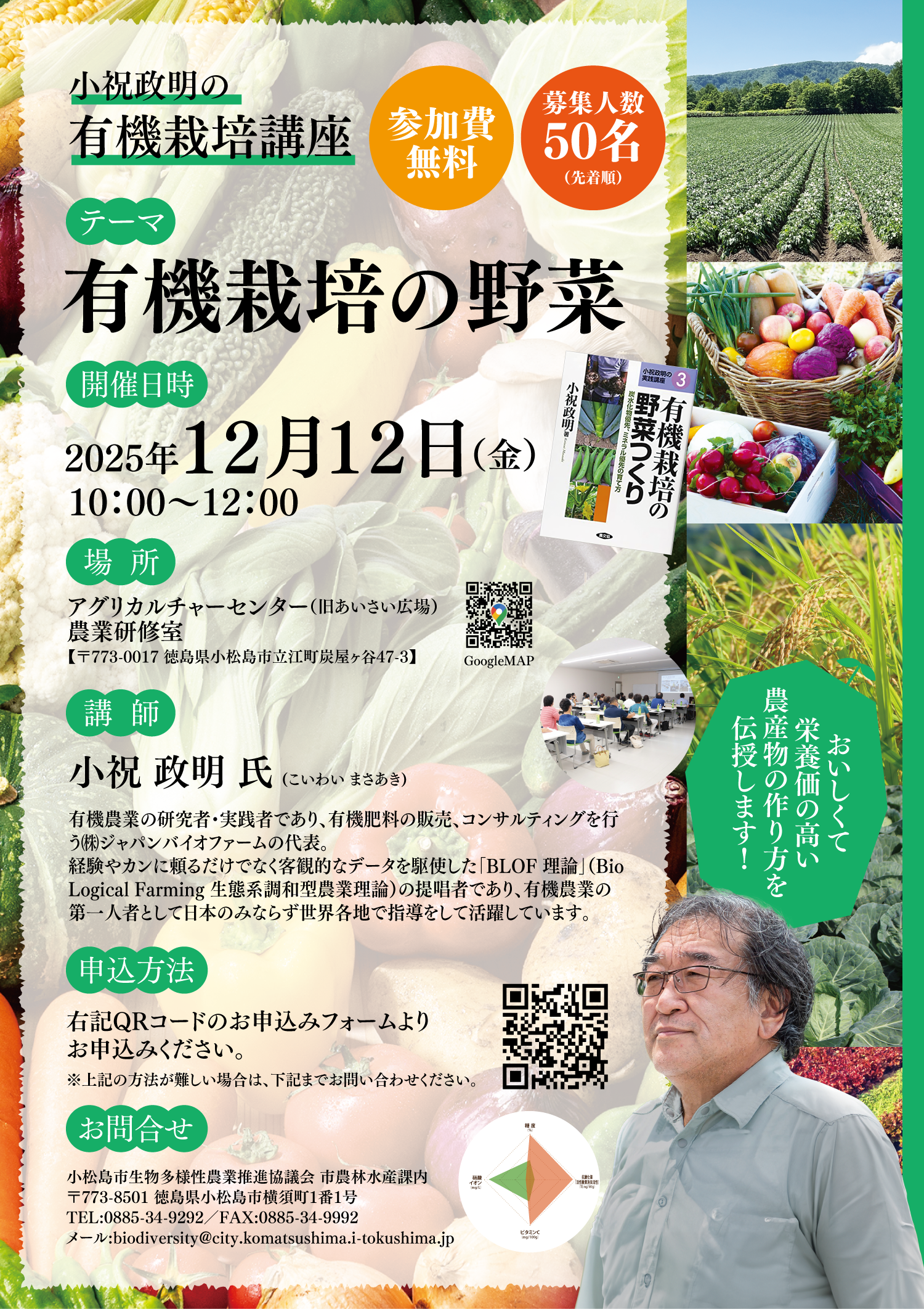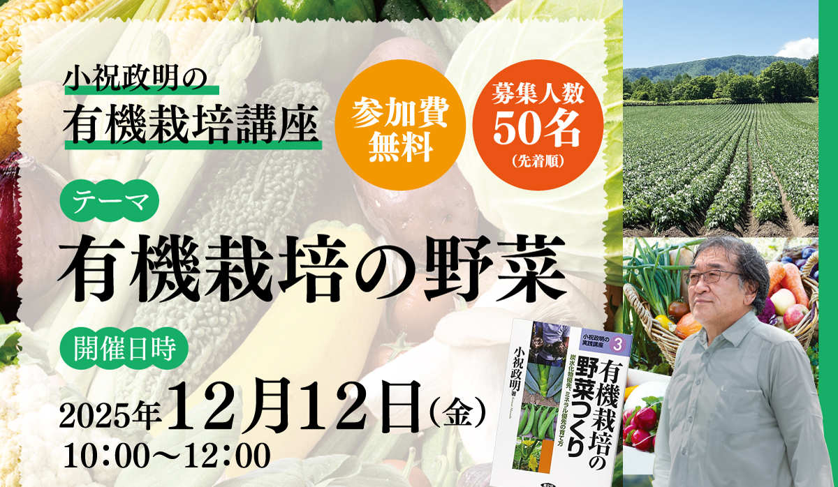 【12/12開催】小祝政明の有機栽培講座「有機栽培の野菜」【参加者募集】